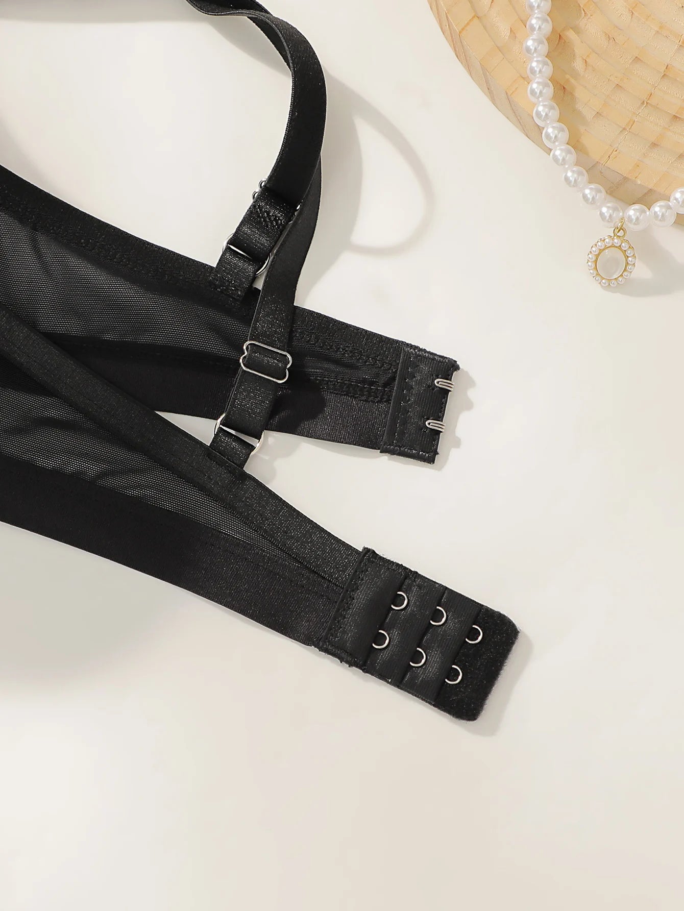 European and American women's sexy lingerie set black pull up bra thong spring and summer